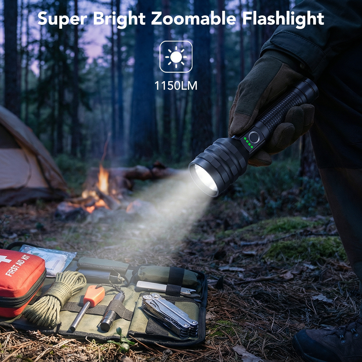 C4 1150LM ZOOMABLE FLASHLIGHT - TELESCOPIC FOCUS RECHARGEABLE 21700 CAMPING OUTDOOR TORCH LIGHT