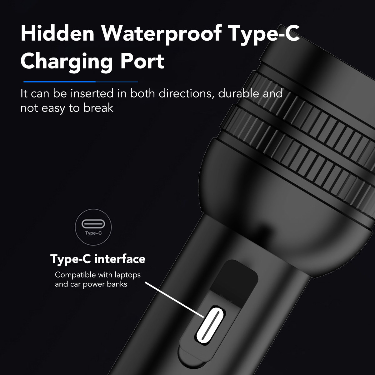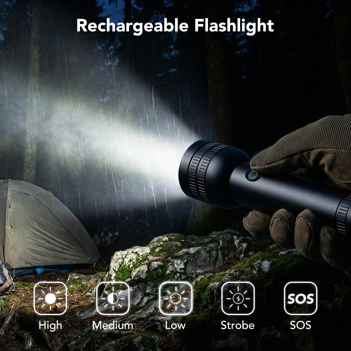CW101 1500LM OUTDOOR FLASHLIGHT - 400M LONG RANGE RECHARGEABLE 21700 CAMPING TORCH
