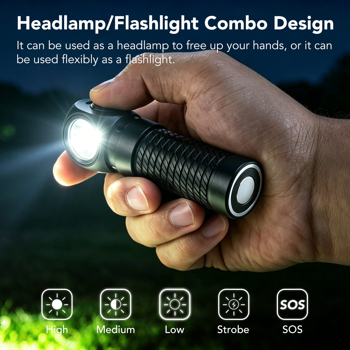 Ultimate versatility. The HL10 features a detachable L-shape body that transforms instantly from a high-performance headlamp for hands-free tasks into a compact, ergonomic handheld flashlight for everyday carry.