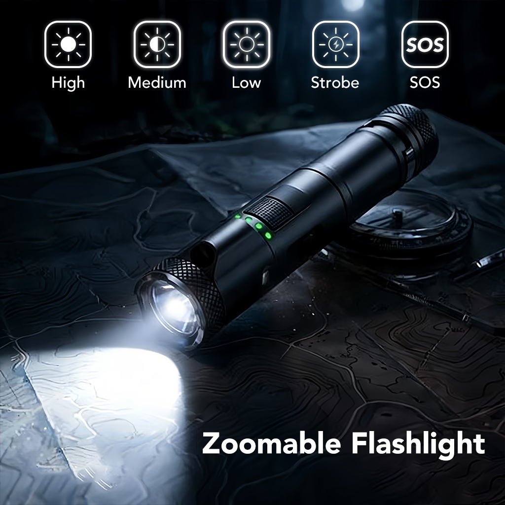 Constructed from aerospace-grade aluminum with an IPX4 waterproof rating, this lightweight (101g) powerhouse is designed to withstand 1-meter impacts and harsh outdoor environments.