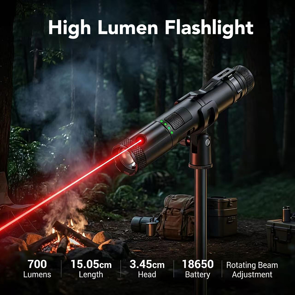LM03 700LM RECHARGEABLE 18650 FLASHLIGHT - RED LASER EDC CAMPING LIGHT