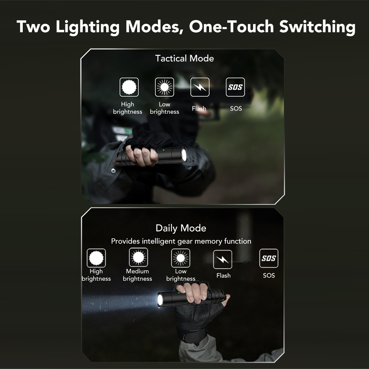 Instant response when it matters most. The T19 features a rapid-activation strobe mechanism designed for self-defense, emergency signaling, or disrupting a target's vision in high-pressure situations.